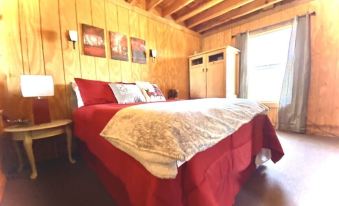 Magnificent cathedral ceilings with beautiful natural wood throughout. Rooms are newly renovated with today's modern style. AC units in each room to keep you cool through the warmer months. An outside firepit is perfect for roasting hot dogs and marshmallows while viewing gorgeous mountain views, or, you can use our brand-new kitchen to prep an amazing meal for your friends and family while blending up a delicious cocktail. Blender included. Two cots with bedding. Cabin sleeps a total of 9. Great riding for 4-wheelers or motorcycles. Just be sure to stay on dirt roads.