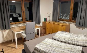 1 single bed (90x200), pull-out bed for children, TV, bedside table, large desk, stool