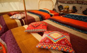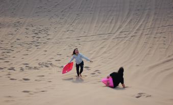 遠離都市的喧鬧,感受沙漠的浩瀚,放下一切的煩惱,體驗生活的樂趣。沙漠、戈壁的壯觀景色,騎着駱駝走在金色的沙漠中,聆聽的悠揚的駝鈴聲,追憶着神祕而又古老的絲綢之路,蒙古特色的帳篷以及具有西北風味的烤羊肉串,烤菜,感受沙漠中篝火晚會中大塊吃肉大碗喝酒的豪爽而質樸的西北風俗,體驗與大都市不一樣的日出、日落和數星星看流星許願的慢節奏生活,讓你充分感受到不虛此行。