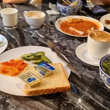 我想説這是我走南闖北以來服務最好的酒店了,從下機就有接機服務,走進大廳就有微笑服務,辦理入住非常方便,房間很大安靜,陽光充足,每天都有酸奶和水果小零食,還有暖心的泡腳桶,礦泉水都是無限使用的,有專門的洗衣房,早餐非常豐富,中午和下午還有免費的炸醬麪,可以説服務無處不在,每個工作人員都值得點贊👍