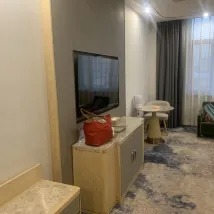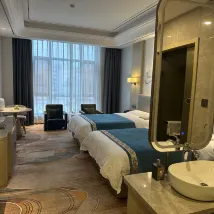 設施:酒店設施不算特別新,有的櫃子有爆皮翹角的情況,但其他設施非常舒適,尤其是大床房中的床是兩張床的床箱拼在一起的,目測超2.5米,房間空間很大,我一個人睡這張特大床,簡直爽翻。 衞生:到位,美中不足就是馬桶是老式馬桶,而且沖水有問題,每次都需要我手動打開水箱沖水,不然就會自己流個不停。