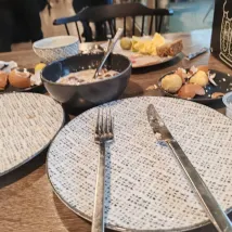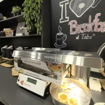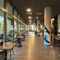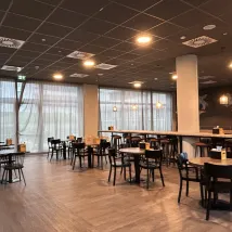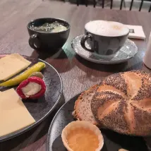 Giving a thumbs up ref to the breakfast - kinds of rolls /bread,cheese ,salad,sausage ,museli,tea,coffee ,yogurt ,whatever you would like to have ,really more than plenty ,and also always seats available ,as the capacity is really big enough ,never will forget this breakfast !
