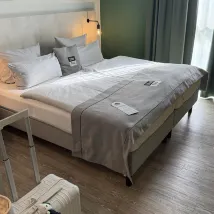 Location is good ,very handy to go to the hbf Dusseldorf ,while there is a lake in front -quite some swans and wild geese /ducks on the water ,very nice to watch them.