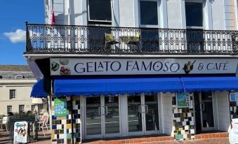 Located on the third floor this apartment is “ themed” using inspiration from the famous neighbouring Italian Ice Cream Parlour. The apartment has its own hallway leading to an open plan Italian style kitchen. From the kitchen, enter the main area with a large plump sofa bed leading to an area with a King size bed, beautiful sea views, table and chairs plus Smart TV. Curtains divide the sleeping areas for night time . A newly refurbished shower room and separate WC. Lobby leading to the rear terrace with external seating , foliage and twinkly lights.