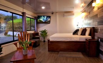 Arenal Love Cabin, your perfect romantic retreat! Enjoy breathtaking views of Arenal Volcano and lake while soaking in the private Jacuzzi , a truly unforgettable experience. Inside, you'll find a comfy King bed, a cozy seating area, A/C, a smart TV and stay connected with good Wi-Fi. The private bathroom features a hot shower, and the kitchen area comes equipped with a mini fridge, coffee maker, blender, microwave, and electric skillet. Create beautiful memories in this charming escape!About pets:Pets allowed: dogs less than 55 lbs per pet (limit one pet total).About checkOut:Check out before 11:00 AM.About children:Adults only.About checkIn:Check in after 3:00 PM.About smoking:Smoking is not permitted.About events:No events allowed.