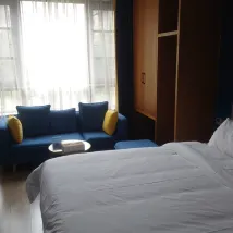 房間設施齊全,浴巾有專門消毒並密封包裝,衞生滿分,乳膠枕頭及床墊,非常舒適!我們到達時已經晚上10點半了,服務員仍然熱情接待,聽説小朋友愛喝酸奶,還特意準備了酸奶以及很新鮮的歡迎水果及小食品!而且早餐不錯,培根是現煎的,牛肉麪和排骨麪味道很好,贈送的果茶很好喝。如果能夠提供現磨咖啡就更好了!