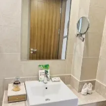 衞生:乾淨整潔,沒發現什麼不如意的地方 環境:在峨眉山腳下,到景交車、高鐵站都是幾分鐘,打車幾塊錢。環境比較清爽。需要特意説明的是,他是分散式住宿。不要擔心別的旅客出行的打擾。 設施:智能馬桶。有獨屬洗衣機,對旅遊人士非常友好。有獨立小廚房,不過我沒用上。 服務:歡迎水果,奶茶,温泉。 高鐵峨眉山站接送:都挺好