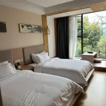 這次入住峨眉山格萊雅度假酒店的體驗真的超出預期,必須好好誇誇! 從踏入酒店開始,就能感受到濃濃的度假氛圍,裝修融合了峨眉山的禪意與現代舒適感,大堂的設計很有格調,一進門就讓人放鬆下來。我們住的房間視野超棒,拉開窗簾就能看到遠處的山景,清晨伴着鳥鳴醒來,傍晚看着夕陽染紅天際,簡直太愜意了~ 房間內部也很用心,床品柔軟舒服,設施齊全又新,連細節都做得很到位,瞬間讓人有了歸家的温暖。 最想誇誇服務,從辦理入住到離店,工作人員都特別熱情周到,會主動介紹景區路線和酒店活動,有問必答,還會主動幫忙提行李,感覺像被家人照顧一樣貼心。 酒店的餐食也很驚喜,早餐種類豐富,味道都很贊,晚上還有晚安粥,管家會送到房間。 地理位置也很方便,離峨眉山景區不遠,周邊環境安靜,晚上特別清凈,睡個好覺第二天爬山超有精神。 總之,這次入住體驗滿分,無論是家庭出遊還是情侶度假都很合適,已經把這家酒店列入下次來峨眉山的必住清單了,強烈推薦給大家!