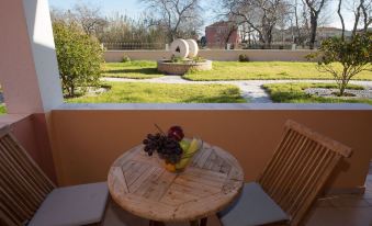 埃裡庫薩別墅位於埃裡庫薩島,距離科孚島8海里。該別墅群由7棟半獨立式兩層別墅組成,每棟別墅面積45平方米,最多可容納4位顧客。別墅位於埃裡庫薩“波爾圖”廣場的圍欄內。一樓設有配備基本烹飪設施的小廚房(含餐桌)、帶淋浴間的獨立隔斷以及帶梳化床(可轉換為雙人床)的起居室。室內樓梯通往二樓的主臥,主臥配備一張雙人床,並可通往俯瞰廣場和花園的精美陽台。別墅內除了綠草茵茵、繁花似錦的花園和橡樹外,還設有室外淋浴、燒烤區和公共洗衣房。提供床單、毛巾、無線網絡、空調和液晶電視,房外路邊設有停車位。禁止攜帶寵物。