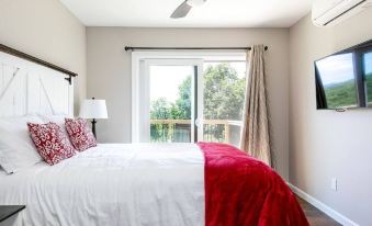 This room is McIntosh, a cozy & comfortable room with a queen size bed with TV/WiFi. It shares a common deck with Cortland & a common quaint sitting area that has a gas fireplace for those chilly nights!