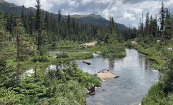 Imagine sitting on the sofa, gazing out the picture window, and witnessing elk and deer strolling by—a common occurrence in this area. Still Waters Lodge offers a serene and relaxing stay, with the option to be as active as you desire on the numerous trails in RMNP. Nestled in a peaceful family community with private grounds, you can stroll around and enjoy the wildlife and picturesque scenery. The community is located adjacent to the Big Thompson River, so you won't miss the tranquil sounds of the cascading river from the deck. For the little ones, there's a newly built play area with a picnic spot, ensuring they have a great time too!