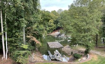 "Hakuna Matata" what a wonderful place! You will have no worries here. Enjoy this large Lake Norman home tucked away in a quiet cove connected to main channel. Finished Basement for kids to escape /w kitchen. Private dock with great fishing and lots of space for a private swim. Amazing views and backs up to Lake Norman State Park. Great deck outside with gas fire pit below to enjoy the fire flies. Lake Norman State Park which has 30+ miles of hike/bike trails, boat rentals, picnics.About pets:Pets allowed: dogs (limit 2 total).About checkOut:Check out before 10:00 AM.About children:Children allowed: ages 0-17.About checkIn:Check in after 4:00 PM.About smoking:Smoking is not permitted.About minBookingAge:Minimum age to rent: 25.About events:No events allowed.