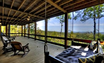 Just outside this lower level sits a sunken hot tub and a 32" Flat Panel TV; around the corner is an outdoor day-bed located on the view-side of the home. Continuing around the outer decks of this home, you'll discover another screened in porch with a ping pong table, a high-top table and an outdoor Flat Panel Television. The upper outside level is adorned with an outdoor fireplace and a Flat Panel Television as well as swings and other outdoor furniture and amenities. This cabin is equipped with all your vacation needs completely in mind in order to make your stay as effortless and glamorous as possible.
