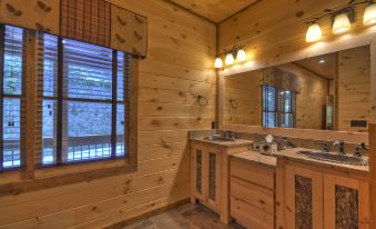 Located on the entry level, you'll find a King bedroom with a 40" Flat Panel Television and an attached bathroom with a double vanity and a stand-in shower, and a large walk-in closet. Upstairs offers a loft area attached to a catwalk that leads to a private upper-level porch. Off the loft is access to the master King Bedroom with a 40" Flat Panel Television, attached bathroom that offers a walk-in shower, towel warmer, walk-in closet, a kitchenette with a Keurig, a gas fireplace and private screened in porch. The screened deck area off of the master king bedroom offers the option to remove the screen via remote control if desired.