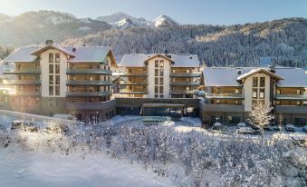 Wunderschönes Hotel für einen Skiurlaub. Nur wenige Minuten zu Fuß zur Piste. Kostenloses Depot für Skisachen mit dabei, sodass die Skier an der Piste gelassen werden können und nicht immer hin und her geschleppt werden müssen. Das Skigebiet ist riesig, sehr viele verschiedene Lifte und Restaurants an der Piste. Das Hotel selbst ist wunderschön modern rustikal eingerichtet. Das Personal spricht überwiegend englisch, ist aber jederzeit mit einem Lächeln bereit, alle Wünsche zu erfüllen. Beim Essen hat man feste Tische und beim Abendessen wird täglich zwischen einem auswahlreichen Buffet und a la Carte gewechselt. Jeder Abend bietet also andere Speisen. Es gibt richtige Themenabende z.B. Asiatischer Abend mit Thai Suppe, chinesischen Nudeln, Sushi und co. Das Frühstück bietet am Buffet stets alles, was man sich wünschen kann. Von klein bis groß findet hier jeder was. Auch eine Live Station gibt es sowohl morgens (Omlette) und abends (wechselnde Gerichte). Die Zimmer sind sehr modern eingerichtet und gut ausgestattet. Kleiderschränke, Schreibtisch, Sitzgelegenheiten. Der Balkon ist ebenfalls mit Sitzgelegenheiten ausgestattet und gibt (je nach Zimmer) einen wundervollen Blick auf die Berge. Es wird täglich gereinigt und alles ist sehr sauber. Auch das Bad wirkt sehr neu und ist top ausgestattet. Ein großer Innenpool sowie ein daran gebundener großer beheizter Außenpool sind das Herzstück des Spa. Sauna gibt es auch und diverse Massagen sind buchbar. Großer Sitzbereich an der Bar