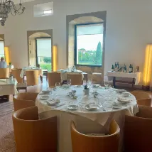 Nous avons séjourné en couple dans cet établissement, attirés par son cadre authentique — et il faut dire que le lieu est vraiment superbe. L’endroit respire le calme, avec beaucoup de cachet et une atmosphère très agréable. La piscine, sans être immense, est très sympa et bien entretenue, parfaite pour se détendre après une journée de visite. Le restaurant a été une excellente surprise : des plats savoureux, bien présentés, avec une vraie recherche dans les saveurs. Le petit déjeuner offre également un large choix, de quoi satisfaire tous les goûts. Nous conseillons vivement de prendre la demi-pension : non seulement la cuisine vaut le détour, mais il est aussi assez difficile de trouver des restaurants à proximité, surtout en haute saison. De plus, le stationnement dans les environs peut vite devenir compliqué. En revanche, quelques points ont un peu terni l’expérience. Le bar a des horaires très limités, ce qui est dommage quand on souhaite prendre un verre en dehors des heures strictes du dîner. Autre déception : la chambre ne disposait pas de climatisation, contrairement à ce que laissait entendre la description lors de la réservation. Une simple ventilation, insuffisante en plein été dans cette région chaude — un point à corriger absolument. Enfin, le service a été inégal selon les moments : certains serveurs manquaient franchement d’amabilité et le service était parfois très lent, ce qui tranche avec le standing que l’on pourrait attendre d’un tel lieu. En résumé, une belle expérience pour le cadre et la cuisine, mais quelques améliorations seraient bienvenues pour rendre le séjour vraiment à la hauteur.