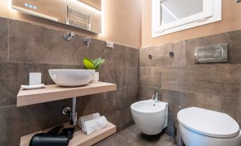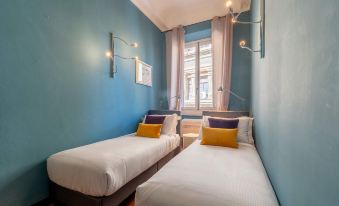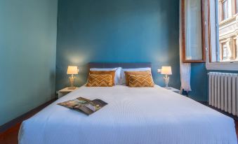這套位於的黎波里街 (Via Tripoli) 的獨家兩臥兩衛公寓,俯瞰著國家圖書館 (Biblioteca Nazionale)、聖十字教堂 (Santa Croce) 鐘樓和阿諾河 (Arno river)。公寓以其原汁原味的因普魯內塔 (Impruneta) 赤土地板和客廳格子天花板上的原始壁畫而引人注目。我們從主廳進入公寓。左側是主臥,可欣賞國家圖書館和聖十字教堂 (Santa Croce) 的景色,配備一張 160x200 釐米的雙人床和智能電視。旁邊是次臥,配有兩張 80x190 釐米的單人床。兩間臥室之間的走廊設有衣櫃,您可以存放所有個人物品。回到右側入口,沿著走廊走到一半,我們會看到設備齊全的廚房,配備了您享用所有必需的用具。
