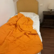 簡直是垃圾。窗戶打不開,因為窗扇上沾滿了鼻涕,而且沒有從外面固定。如果你想打開窗戶看看佛羅倫斯的屋頂,你就知道窗扇會塌下來。 床上鋪著床罩,上面沾滿了其他客人的體液,真是令人作嘔。 (附圖) 從下面的照片就能看出他們對待你的態度——窗簾被扯掉了,但旅館裡的人根本不在乎。 「沒事兒就好」。其實你只要把它掛回去就行了。真丟臉。 雖然預訂單上寫著有浴袍和拖鞋,但沒有。保險箱關不上,也壞了。房間鑰匙掛在一個非常沉的鑰匙鏈上——帶這麼大的鑰匙很不方便。 我要求換房間,結果被拒絕了,說沒有其他房間了,不過我查了一下——房間號碼在攜程網站上可以免費查到。也就是說,他們根本就是出於怨恨而拒絕換房間。 早餐很差,你得向廚房的女士要咖啡,因為沒有免費的咖啡機。 如果你決定住在這種垃圾地方,至少不要吃早餐。周圍有很多餐館,你可以自己吃,更便宜,而且更美味。 我強烈不推薦。