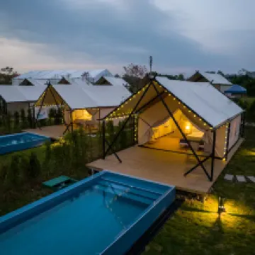 在台風前一天還是去了營地 幸運的包場了 每個工作人員都非常熱情 細心講解酒店和周邊遊玩景點 燒烤食材也很多選擇 房間雖然是帳篷 但空調足夠涼快 傍晚再游泳燒烤非常愜意 蚊蟲雖然多但房間也備好驅蚊液 狗子們玩的很開心 下次還會再去!推薦!!