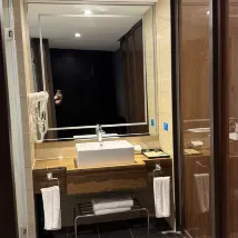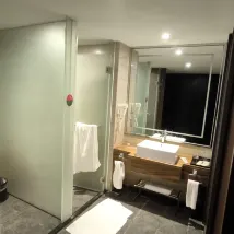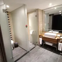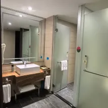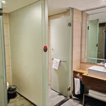 裝修比较舊,淋浴间花灑头是破烂溜水的,也有好多水垢等,每次进入洗手间的门及马桶玻璃门时门较的異声非常大,晚间会影响其他人休息!另这酒店只能每天提供每房间兩支樽裝水'如再要求便要收费,今时今日的酒店服务太落后了,现时各大酒店及公寓式酒店也沒有收费的,早歺上完仝不行,连咖啡,奶茶,茶也沒有提供,何況食物上有多选擇的呢?有待改善!