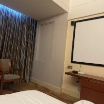 這個價位能住到這樣的房間太值了!乾淨衞生,WiFi流暢,熱水充足,前台小姐姐還幫忙升級了房型,這屏幕躺着看電影真的爽