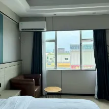 性價比很高的酒店,有免費停車場。酒店風格很簡約,且設施齊全 。酒店周圍全是賣傢俱的,吃飯也很便利,樓下就是超市,飯店,工作人員都很友好哦,動作很麻利,整體很滿意。