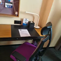 房間比較乾淨,比較適合商務出差,桌子和椅子搭配很合適,特別是那個椅子的靠背很舒服,嗯,這個酒店的服務也很好,還留言提醒啊,做的非常好