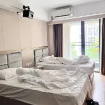 房間濕氣重,衞生間枱麪都是黴菌,沙發很臟,空調和牆壁的縫隙中甚至有蜘蛛拉絲網,沒有護髮素,20幾層的樓,每層十幾户,衹有兩部電梯,沒有刷卡乘梯。停車衹包一天6小時,我請問哪個住酒店2晚就衹呆6小時?非常不推薦,體驗感很差