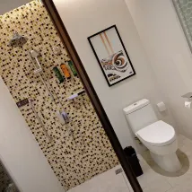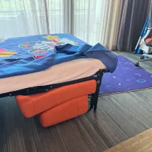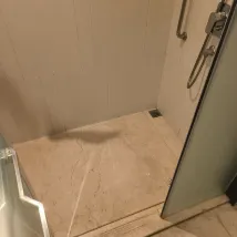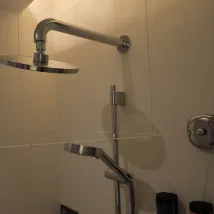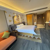整體體驗很差,不值這個價位。其實就是大床雙人房,加了張梳化床就美其名曰豪華親子房了,空間很侷促。配套服務沒跟上。廁所地板很多污跡,廁所和沐浴間都不能內扣,房間地毯也不乾淨。沐浴間地板沒有防滑地墊,沐浴間和廁所門口沒有地墊,沐浴間找不到可以掛衣服的。打電話給前台也是愛理不理,叫她叫人來看,半天也沒人來。後來叫前台加被子,約二十幾分鍾就有服務員送來了。順便問了沐浴間沒地方掛衣服的事,服務員説應該是壞了,後來服務員可能去問了其他人,又回來説,沐浴間花灑旁邊有個隱藏的繩子拉到對面牆角可以掛東西。問題是沐浴間很小,拉出來的繩子還是在花灑下面經過,如何掛乾淨待換的衣服呢?