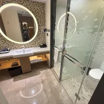 房間夠寬敞,整體挺舒服的! 設施:健身房挺大設備也看上去挺齊全 衞生:很乾凈整潔 環境:靠近聽音湖很幽靜,瀑布觀景很漂亮 服務:很細緻周到耐心❤️