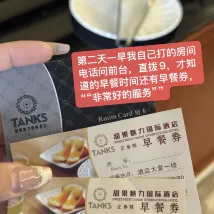 前台服務超級差!!我是凌晨3點入住,跟我説在**下的單用不了,然後沒有下文也不説半句話在盯着電腦看,我以為他是在幫我取消訂單,結果我站了十分鐘看他沒有説一句話我就問他弄好沒有,怎麼訂房,他一句話不説也不理我,我就生氣叫他喊大堂經理出來,結果他來一句我以為你退房了,*******還推卸責任,有這種**前台就等着早點倒閉吧,我都懶得説了!!!!早餐券也不給我,時間也不跟我説幾點,真是住的受氣!!!團購價還要¥213元!!!就這個服務標準是吧?得花幾萬塊才配得上好的服務是嗎????