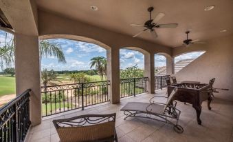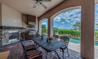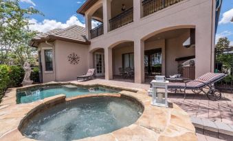 Mansão luxuosa em campo de golfe no Reunion Resort Orlando a 10 minutos dos parques da Disney; segurança 24 horas; roupas de cama e banho incluídas; piscina e jacuzzi (aquecimentos $200 por semana opcional); churrasqueira; cinema e copa no andar de cimaAbout pets:No pets allowed, service animals permitted.PET fee of $55 per day per animal.About checkOut:Check out before 10:00 AM.About children:Children allowed: ages 0-17.About checkIn:Check in after 4:00 PM.About smoking:Smoking allowed: in designated areas.About events:No events allowed.
