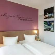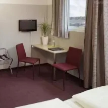 Gran sorpresa al llegar y ver qué estaba pegado literalmente a la vía del tren, y sobre todo cuando te indican que el ascensor no funciona y te dan una habitación en el último piso y ninguna posibilidad de ayuda para subir el equipaje de 20kg. Indicaron que habían llamado al técnico pero a la mañana siguiente, seguía sin funcionar el ascensor, porque el técnico no había venido o no había sido llamado. Se le solicita a la persona de recepción hablar con su jefe y dice que no puede llamarlo, por lo que se le pide una hoja de reclamaciones e indican que en Alemania no hay, que mande un mail a la atención del director, pero ninguna ayuda para mover el equipaje ni descuento en la habitación al faltar uno de los servicios indispensables. Habitación y desayuno aceptables. La cama vibra cuando pasan los trenes al lado y sin tapones para los oídos es imposible dormir. No volveremos. Inaceptable.