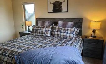There's ample room for relaxation after hitting the slopes in the large living room. The comfy large sectional sofa and ottomans provide plenty of seating around the cozy gas fireplace and large Smart TV. Stream your favorite shows while you cozy up together, or the available family games! When it's time to eat, you'll have everything you need in the full, well-equipped kitchen and seating at the dining table and breakfast bar. The home includes an in-unit washer and dryer too!