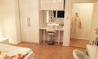 The 2013 completely refurbished and newly furnished holiday home offers everything you need for a relaxing city break or a productive business stay: four lovingly decorated bedrooms offer sleeping for 6 adults (3X double bed 160X200, 1X high quality sofa bed 160X200, 1X electrically adjustable bed 120X200). In the living-dining room there is another sofa bed (160x200) and a sofa bed of good quality. A cot is also available. Bed linen and towels are provided in the four individually designed bedrooms. The kitchen is fully equipped: Fitted kitchen with natural stone worktop, high quality appliances, large fridge-freezer, oven, dishwasher, washer and dryer. The apartment has a bathroom with bath and sink, 2 toilets and two sinks in two bedrooms.