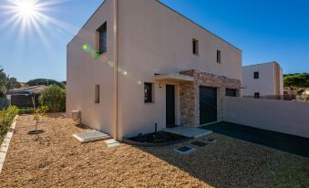 Apartment block "Azur Cottages", built in 2024. With 8 houses, outside the resort, 3 km from the centre of St Aygulf, 2.5 km from the beach. Parking. Shop 500 m, grocery 50 m, shopping centre 10 km, bus stop "Le mas des étangs" 500 m, railway station "Fréjus" 10 km, sandy beach "Les Esclamandes" 2.5 km, park "Areca" 2.5 km, diving center 11 km, thermal baths "Thalasso de Port Fréjus" 11 km. Sports harbour 2.8 km, golf course (18 hole) 3.5 km, sailing school 15 km, riding stable 3.5 km, sports centre 5 km. Nearby attractions: Aqualand, Lunapark 7 km, Fréjus 8 km, Saint-Raphael 10 km, Ste Maxime 20 km, St-Tropez 30 km. Well-known ski regions can easily be reached: Auron, Isola 2000 155 km. Well-known lakes can easily be reached: Lac de St Cassien 50 km, Lac du Du Verdon 90 km. Hiking paths: Estérel 20 km, Sentier du Littoral 5 km. Please note: suitable for families. 4-room house 89 m2 on 2 levels. Spacious, modern and tasteful furnishings: living/dining room 37 m2 with TV (flat screen), electric shutters. Exit to the terrace, to the patio. Open kitchen (oven, dishwasher, 4 induction hot plates, toaster, kettle, microwave, freezer, electric coffee machine, Capsules for coffee machine (NESPRESSO) extra). Shower/WC. Upper floor: 2 rooms 13 m2 with Dressing room, each room with 1 french bed (1 x 140 cm, length 200 cm). 1 room 13 m2 with Dressing room with 2 beds (90 cm, length 200 cm). Bathroom, sep. WC. Electric heating. Large terrace, patio. Terrace furniture, deck chairs (2). Facilities: washing machine, hair dryer. Internet (WiFi, extra). Parking. Please note: maximum 1 pet/ dog allowed. TV only FR. Smoke alarm. Offer by a private individual according to Art. 155, IV of CGI. 12EVM8