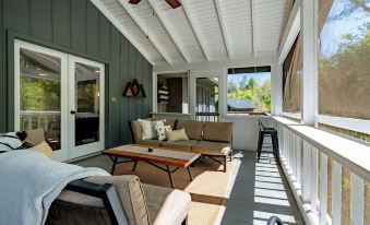 The Spring Banks Cottage is situated next to a tranquil stream that you can hear from the cozy screened-in porch. The other 8+ acres are surrounded by the Newfound Creek, perfect for a quick morning jaunt to properly kick off your day.