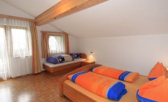 Fügen: Cosy working farm "Gasteighof", surrounded by meadows. On the outskirts, 1.7 km from the centre of Fügen, in a secluded, quiet, sunny position, 6 km from the lake, 1.4 km from the skiing area, in the countryside. For shared use: garden, meadow. Terrace, garden furniture, barbecue, children's playground. In the house: WiFi, storage room for bicycles, storage room for skis, central heating system, ski boot dryer. Motor access to the house. Parking at the house. Grocery 800 m, restaurant 500 m, bus stop "Kapfing Dorf" 550 m, railway station "Kapfing Bahnhaltestelle" 1.1 km, outdoor swimming pool 1 km, indoor swimming pool 1 km, thermal baths "Erlebnistherme Fügen" 1 km, lake Schlitterer Badesee 6 km. Tennis 1 km, riding stable 2 km, ski lift 1 km, gondola lift 1.4 km, ski bus stop 500 m, ski school 1 km, cross country ski track 400 m, ice rink 1 km. Nearby attractions: Erlebnistherme Zillertal 1 km. Well-known ski regions can easily be reached: Spieljoch 1.4 km, Kaltenbach-Hochfügen 6 km, Zillertal Arena 13 km. Please note: Local sale of farm products. Ski bus (free of charge). Free ski bus service to the ski region Spieljoch and Kaltenbach-Hochfügen, Zillertal Arena. Please note: Additional accommodations can be booked. 3-room apartment 75 m2 on 2nd floor. Cosy furnishings: entrance hall. 1 double bedroom. 1 room with 1 bed and 1 double bed. Exit to the balcony. Living/sleeping room with 1 double sofabed, dining table and satellite TV (flat screen). Exit to the balcony. Open kitchen (4 hot plates, oven, dishwasher, kettle, electric coffee machine). Shower/WC, sep. WC. 2 balconies. Balcony furniture. Very beautiful view of the mountains and the countryside. Facilities: Internet (WiFi, extra). Maximum 1 pet/ dog allowed.