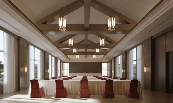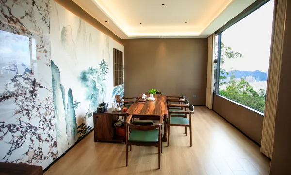 環境位置: 酒店位於山區,周圍綠化率極高,庭院與房間外均覆蓋茂密植物,空氣清新且富含草木芬芳,遠離城市喧囂,提供靜謐自然的休閒環境。建築採用中式四合院設計,黛瓦白牆搭配木質回廊,結合流水與青藤裝飾,營造出傳統中式美學的雅致氛圍。房間視野開闊,可欣賞山林綠意與星空,部分房型配有露台,增強與自然景觀的互動性。(根據 19 則評論)