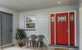 - Covered parking at the front door.