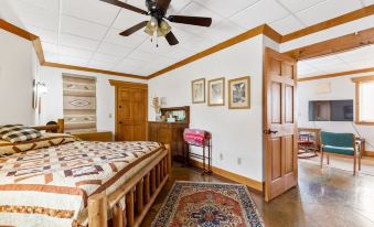 Your accommodations are uniquely decorated to showcase the history and charm of Montana. Each great room contains a sitting area with hide-a-bed, dining area and kitchen. Bedrooms are spacious with private bathrooms and a small table and chairs.