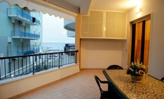 The apartment, recently built, is inserted in a residence facing the sea, a swimming pool, bar, pizzeria, shops and services. E 'consists of a double bedroom, a bedroom with two single beds, a living room with dining table and sofa bed, kitchen, bathroom and a beautiful veranda with table and chairs where you can spend pleasant summer evenings and enjoy the beautiful view sea. Has all the comforts, air conditioning, private garage; are provided sheets, towels and kitchen linens.