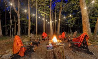 “樹林裡的絕佳度假勝地!……篝火坑、熱水浴池、門廊,周圍綠樹環繞……您還想要什麼?”——肖恩