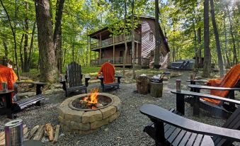 "Great getaway in the woods! . . . Firepit, hot tub, porch, surrounded by trees ... what more can you want?" — Sean