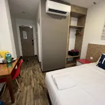 Simple stay for the night. Bathroom door oddly creaky. But it was a last minute decision to stay and so glad they had usb adaptors to loan and charge! A plus point def! Had a cafe nearby which i didnt get to try. Altho it looks nice.