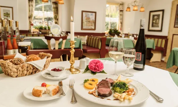 飯店於8:00至10:00間供應包括自製果醬在內的豐盛自助早餐。顧客可以在客廳或舒適的花園內用餐。菜餚均採用當地的時令食材烹製。酒窖提供品種繁多的奧地利葡萄酒。
