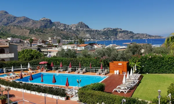 Fijne accommodatie in Giardini Naxos . We verbleven hier eind augustus 2025 en bij aankomst in de ochtend was het eigenlijk al goed geregeld. We konden direct naar de kamer, wat wel fijn is na een lange nacht. De kamer was zeer schoon en fris en was voorzien van alles wat je nodig hebt. Badkamer netjes, goed en modern. Mooi zwembad. En een goed restaurant waar je voor een nette prijs prima kan eten. Verder waren alle medewerkers super vriendelijk en behulpzaam...