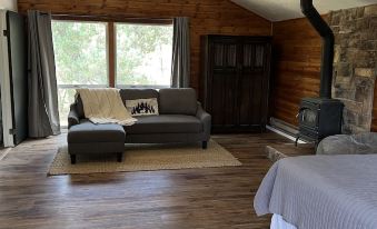 Colcord Mountain Hideaway is an 800 sq foot second story studio with a lower level kitchenette. Perfect for a romantic couples weekend or a family of four with older kids!