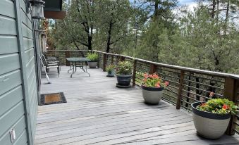 The Hideaway at Haigler Creek is a luxury cabin in the very private Preserve at Haigler Creek, a small community surrounded by national forest. The cabin is 3003 sq feet with 3 bedrooms and 2.5 baths. It has Starlink high speed wifi so you can still be connected to the world while away from it all. It has many luxury amenities for your enjoyment such as an OLED TV, Apple TV, Games, Tuft & Needle mattresses and more. Gila Country STR Permit #STR-2509-0088