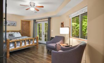 • 臥室 1:特大床臥室,配有舒適的床、吊扇、衣櫃,窗戶可欣賞森林美景!